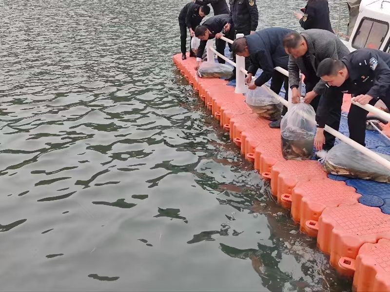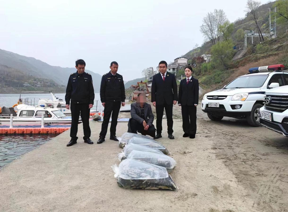 為助力漢江水域生態(tài)環(huán)境修復(fù),增強非法捕撈水產(chǎn)品涉案當(dāng)事人的法律意識,營造保護漢江生態(tài)環(huán)境的良好氛圍,近日,針對2起非法捕撈水產(chǎn)品案件,陜西省安康市白河縣人民檢察院、縣公安局、縣農(nóng)業(yè)農(nóng)村局在漢江出陜斷面白河下卡子段,聯(lián)合開展以“白河縣非法捕撈案件生態(tài)補償”為主題的魚苗增殖放流活動。
