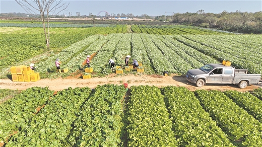 3月22日,位于廣西壯族自治區(qū)貴港市平南縣東華鎮(zhèn)東平社區(qū)西村的蔬菜種植基地里,強干種養(yǎng)專業(yè)合作社負責(zé)人傅華干正組織村民收菜:“這塊田之前種了水稻,秋收后我們又種植了芥菜、大白菜、菜心等蔬菜共180畝,讓土地得到最大化利用,增加經(jīng)濟效益,目前蔬菜收入大概5萬元?!?/p>