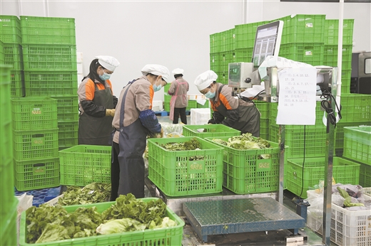 收購企業(yè)員工對蔬菜進行分揀、打包