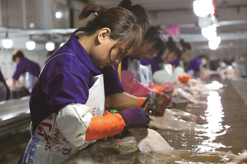 在吉林美中鵝業(yè),工人們正在屠宰加工