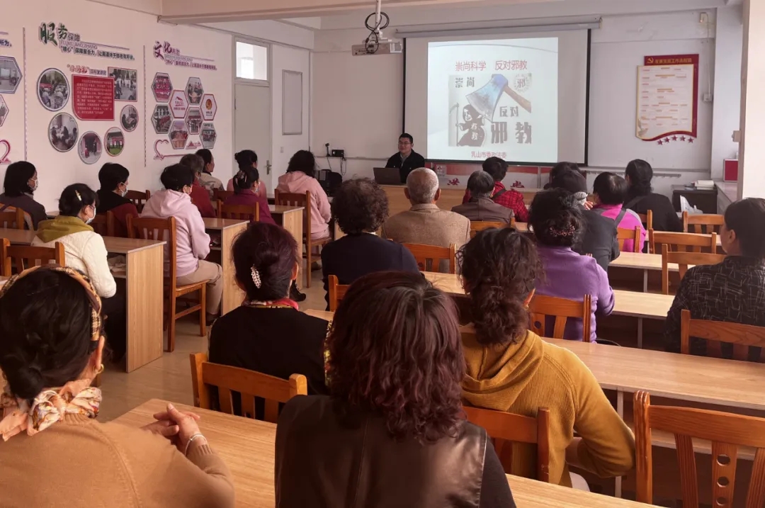 在乳山市城區(qū)街道府前社區(qū),工作人員通過知識講座、問題解答等形式向社區(qū)群眾進(jìn)行宣傳,引導(dǎo)大家反對邪教、遠(yuǎn)離邪教、破除迷信、崇尚科學(xué),使社區(qū)群眾認(rèn)識到邪教的危害及非法性,對邪教言論做到不聽、不信、不傳、不看,積極檢舉揭發(fā)邪教違法犯罪活動。