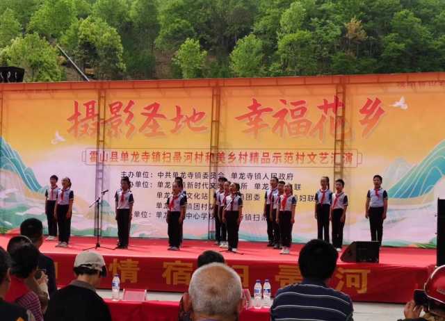 “歡聲笑語響山巔,相約云海里紅杜鵑,屋脊山上看家鄉(xiāng),杜鵑花開滿山崖……”下午三時許,當?shù)?8名小學生組成的“小山雀合唱團”演唱的一曲禮贊家鄉(xiāng)、飽含鄉(xiāng)情的《相約云海紅杜鵑》在攝影家村廣場回蕩,激揚的旋律,嘹亮的歌聲,贏得現(xiàn)場觀眾雷鳴般掌聲。這里,正在舉辦一場春意盎然的文化盛宴——單龍寺鎮(zhèn)掃帚河村和美鄉(xiāng)村精品示范村文藝匯演,這也是該縣今年舉辦的第四場精品示范村群眾性文藝演出。