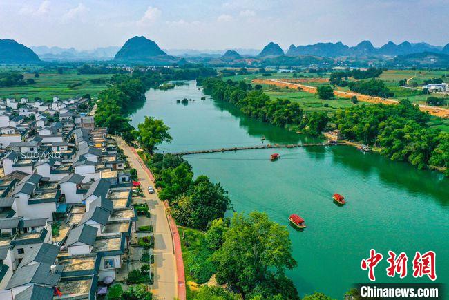 初夏時(shí)節(jié),走進(jìn)卜花村,平坦的村道被長勢(shì)正盛的甘蔗林包裹,青瓦白墻的農(nóng)家小院錯(cuò)落有致。游客在此,可乘花船而行,或騎行于綠道,感受遠(yuǎn)山如黛,近水潺潺;亦可參與戶外稻田研學(xué),探秘壯族古法紅糖制作技藝,體驗(yàn)水上漂流等互動(dòng)項(xiàng)目;還可坐在鮮花燦爛的小院里,靜享石板路、竹籬笆間透露出的鄉(xiāng)野韻味。