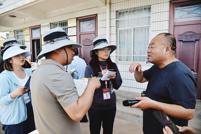 鳳翔區(qū)范家寨鎮(zhèn)鎮(zhèn)長張革新(左)介紹相關(guān)情況