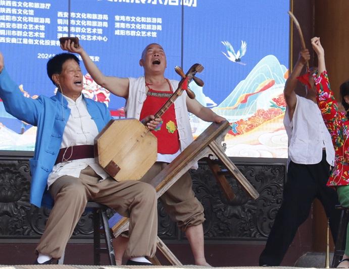 6月28日,西安市夏日廣場(chǎng)群眾文化活動(dòng)現(xiàn)場(chǎng),精彩的秦腔表演與觀眾見(jiàn)面