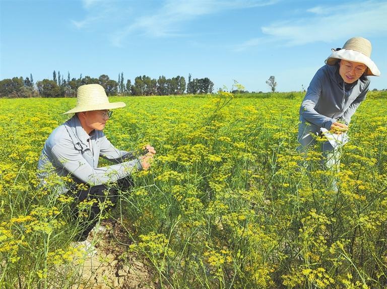 “種茴香省工省力,耗水少,市場價格相對穩(wěn)定,在每斤5元以上,效益比較可觀。今年我們種植了鐵桿茴香,通過施入生物菌肥‘保根120’,茴香表現(xiàn)出了優(yōu)異的抗重茬、防根腐等效果,預(yù)計產(chǎn)量不錯?!秉S花農(nóng)場產(chǎn)業(yè)發(fā)展部副部長張月娥介紹,她一邊觀察茴香長勢,一邊測定土壤墑情。