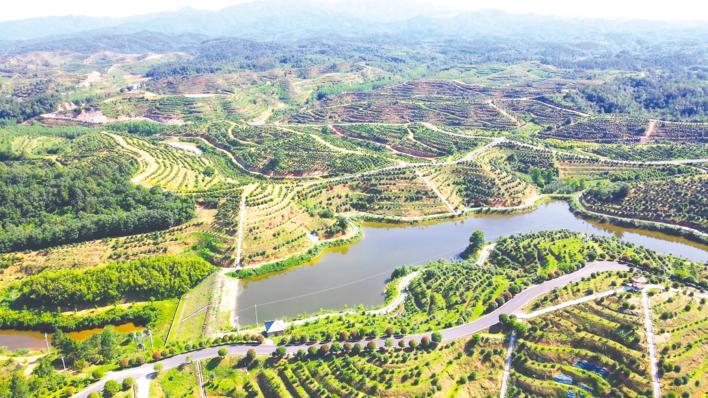 隨縣澴潭鎮(zhèn)龔家灣村的油茶產(chǎn)業(yè)示范園里,一叢叢整齊的油茶樹(shù)間,觀(guān)光道路盤(pán)山而上,直達(dá)山頂?shù)挠^(guān)光臺(tái)。