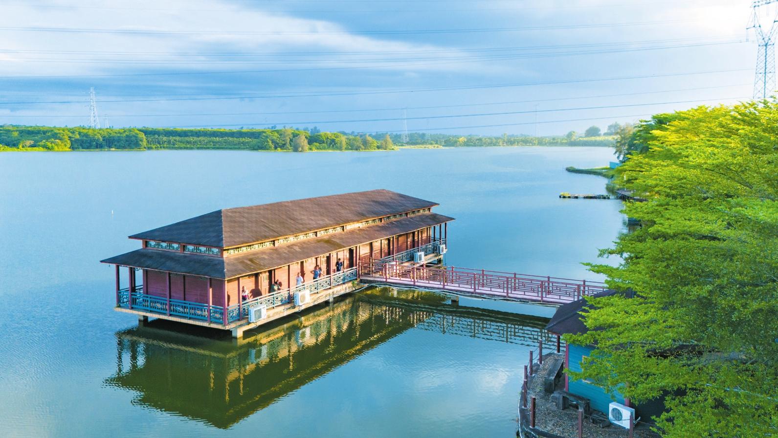 25日,走進(jìn)位于龍華區(qū)新坡鎮(zhèn)的??谔敦S洋火山濕地農(nóng)莊,一幅人與自然和諧共生的田園風(fēng)景畫(huà)映入眼簾。在民宿區(qū)域,一座座獨(dú)棟木屋綠植環(huán)繞,屋檐懸掛著古色古香的燈籠,給人不一樣的感覺(jué)。潭豐洋火山濕地農(nóng)莊負(fù)責(zé)人王作學(xué)介紹,通過(guò)濕地科普、團(tuán)建露營(yíng)、研學(xué)教育等方式,農(nóng)莊吸引了越來(lái)越多人走進(jìn)濕地、了解濕地、愛(ài)護(hù)濕地。