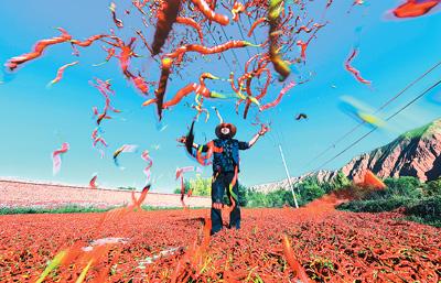 青海省海東市循化撒拉族自治縣清水鄉(xiāng)多灘地、谷地,全年日照充足,出產(chǎn)的線辣椒色澤鮮紅,“香而不辣,口味獨特”,受到大眾喜愛。正是豐收時節(jié),清水鄉(xiāng)家家戶戶在房前屋后晾曬線辣椒,構(gòu)成一幅喜人的秋日圖景。