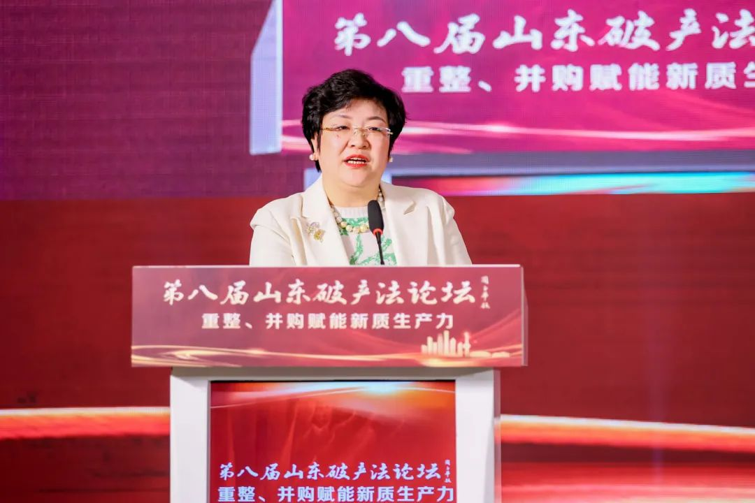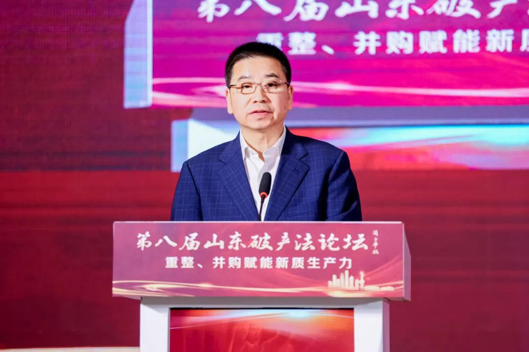 2024年11月10日,第八屆山東破產(chǎn)法論壇在濟南成功舉辦。本屆論壇由全聯(lián)并購公會、山東金融業(yè)聯(lián)合會、山東省不良資產(chǎn)處置協(xié)會、山東大學交叉法學研究院、浙江工商大學破產(chǎn)重組研究院、山東省法學會企業(yè)破產(chǎn)與重組研究會聯(lián)合主辦。本屆論壇緊緊圍繞“新質(zhì)生產(chǎn)力”的深刻內(nèi)涵,聚焦“重整并購賦能新質(zhì)生產(chǎn)力”這一核心主題展開研討。山東法學會企業(yè)破產(chǎn)與重組研究會名譽會長、山東省高級人民法院原院長周玉華;全國工商聯(lián)第十三屆常委、全聯(lián)并購公會會長尉立東;山東金融業(yè)聯(lián)合會秘書長何修崟;山東省不良資產(chǎn)處置協(xié)會會長李薇華;中國法學會世界貿(mào)易組織法研究會副會長兼秘書長、中國人民大學特聘教授石靜霞;華東政法大學國際金融法律學院教授、浙江省高級人民法院原民二庭庭長章恒筑出席開幕式。山東省法學會企業(yè)破產(chǎn)與重組研究會會長劉平主持開幕式。全國工商聯(lián)第十三屆常委、全聯(lián)并購公會會長尉立東,山東省不良資產(chǎn)處置協(xié)會會長李薇華在開幕式上致辭演講。6位主旨演講嘉賓、28位主題演講嘉賓圍繞各主題、議題,展開了為期一天的深入研討。全聯(lián)并購公會副會長、山東省法學會企業(yè)破產(chǎn)與重組研究會副會長兼秘書長、山東華信清算重組集團有限公司董事長提瑞婷作閉幕致辭。