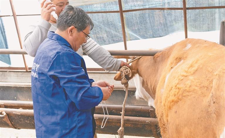 一年深秋,河泉村養(yǎng)殖戶王滿家的牛誤食野草根莖,食管阻塞停止反芻。老牛漲肚難受,奄奄一息。姚金水趕到后,立即用開口器撬開牛嘴,將手伸進食道取出阻塞物。這一下,不僅救了牛,也為王滿挽回了2萬多元的損失。