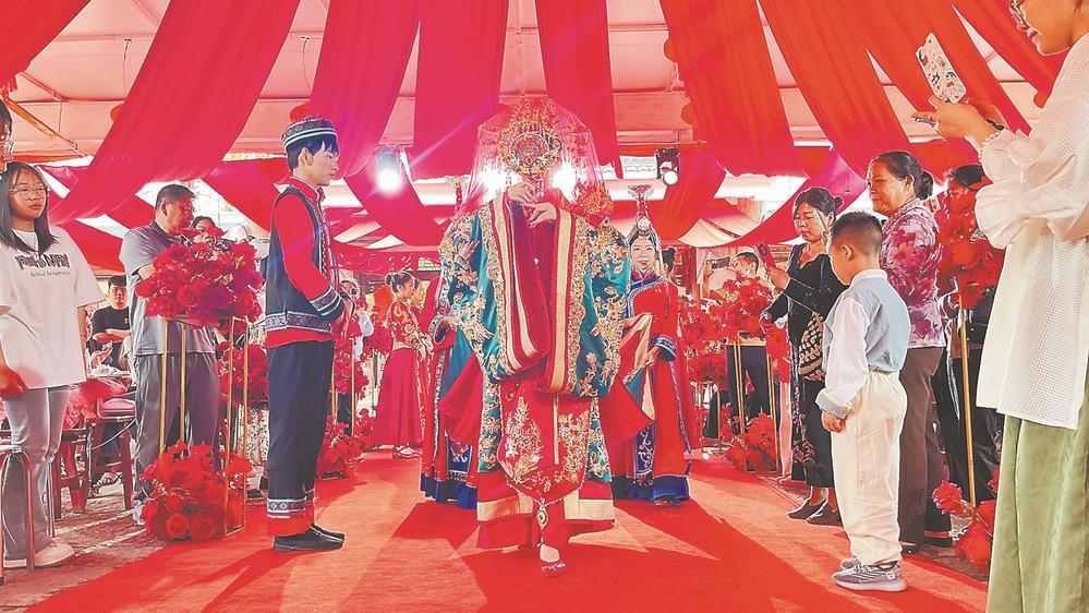 永定土樓景區(qū)在“土樓有喜”劇場內(nèi)開展客家婚俗表演(永定區(qū)融媒體中心供圖)