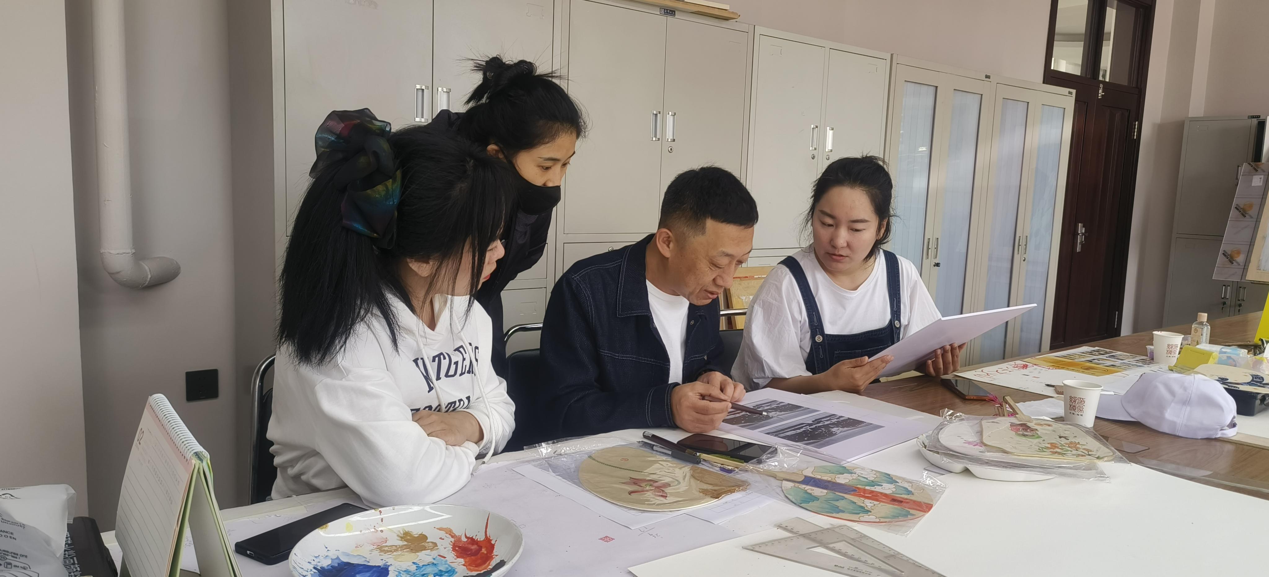 農(nóng)民畫(huà)傳承人在討論農(nóng)民畫(huà)創(chuàng)作(綏棱縣文體廣電和旅游局供圖)