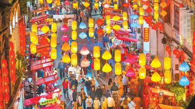 新春佳節(jié)臨近,海南省海口市博愛路年貨一條街張燈結(jié)彩,吸引了眾多市民游客。張茂 攝