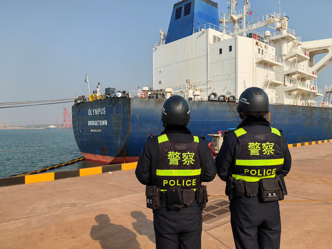 船舶在港期間,董家口邊檢站嚴(yán)密組織勤務(wù)流程,迅速調(diào)配警力,為船舶高效辦理查驗(yàn)手續(xù)的同時(shí),提升科技賦能,綜合運(yùn)用高清視頻監(jiān)控系統(tǒng)、無人機(jī)巡查等手段,確保船舶在港作業(yè)期間安全、如期卸貨投入生產(chǎn)。