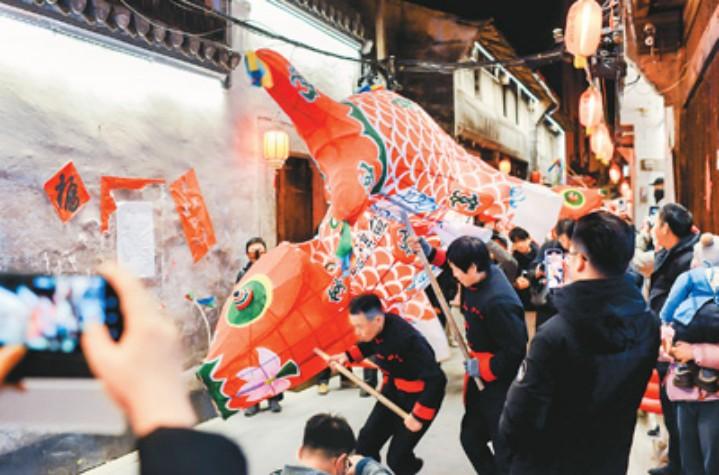 為了陪女兒讀書,鄭冬蛟回到村里,后來競選村兩委,還當上魚燈隊隊長,把魚燈隊伍重新組織了起來?!版音~燈對我來說,就是一種刻在骨子里的情感。”鄭冬蛟告訴記者,從那時起,他帶頭練習(xí)、示范,流的汗比誰都多,只為把瞻淇魚燈的表演效果進一步提升。