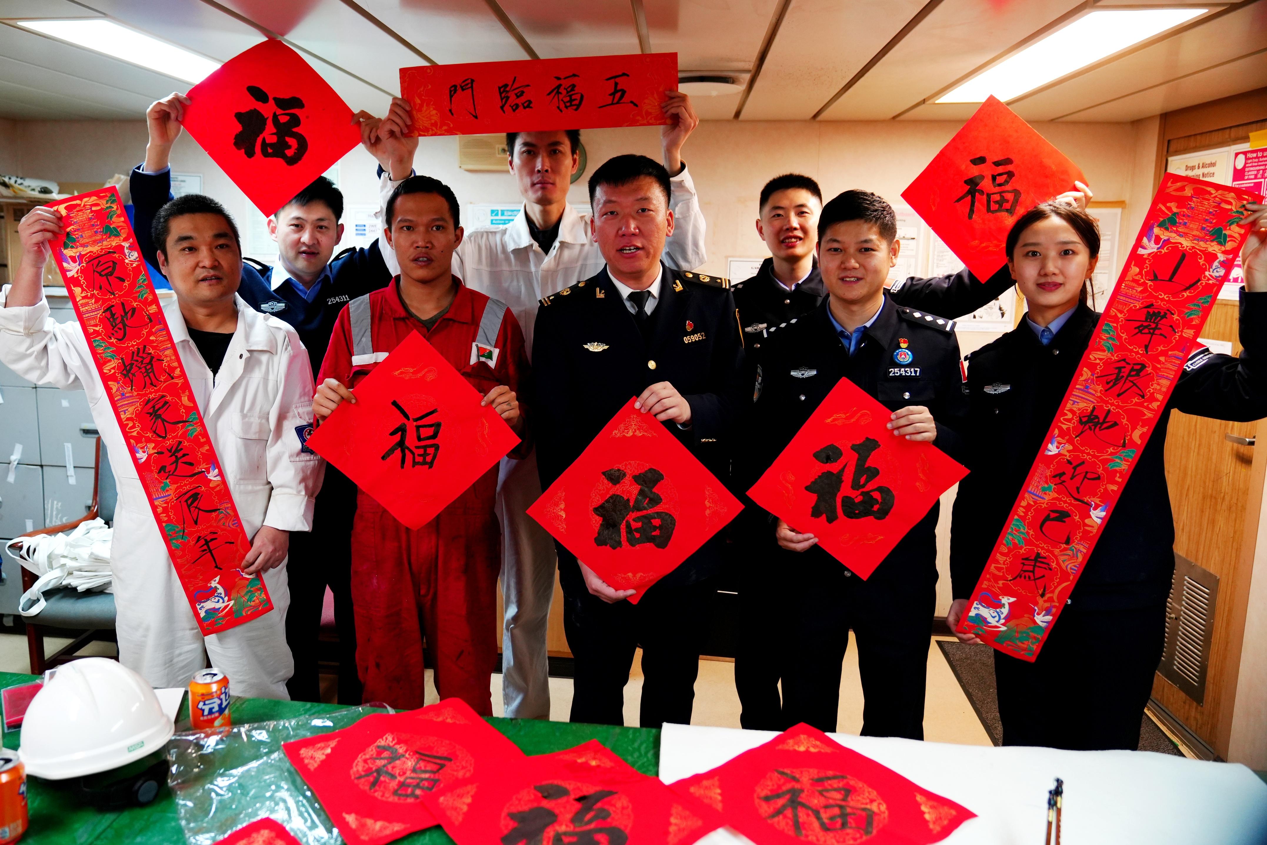 “今天是農(nóng)歷小年,我們這次過(guò)來(lái),打算和船員們一起寫(xiě)福字、包餃子,讓奔波在外的中國(guó)船員提前感受家鄉(xiāng)過(guò)年的氛圍,向外籍船員分享咱們中國(guó)民俗文化?!倍铱谶厵z站移民管理警察介紹。