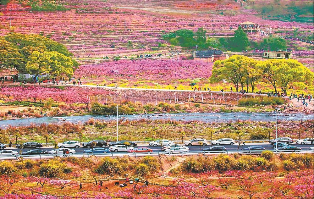 穆云鄉(xiāng)是福安水蜜桃的主產(chǎn)區(qū),桃樹栽培面積達1萬多畝。每年3月,十里桃花如醉霞緋云般爭芳斗艷,遠觀桃林成海,樹下花香四溢。沿著秀溪逆流而上兩公里,有著“南國最美葡萄溝”美譽的刺葡萄產(chǎn)地溪塔村就在步道盡頭。放眼望去,一條秀溪,串起一處處桃花園……穆云鄉(xiāng)鄉(xiāng)長鐘成華介紹:“我們借力水蜜桃核心產(chǎn)業(yè)觀光園的建成,虎頭村、溪塔村實現(xiàn)了連片發(fā)展。鄉(xiāng)里通過舉辦畬鄉(xiāng)桃花節(jié)、三月三歌會、水蜜桃采摘節(jié)、刺葡萄采摘節(jié)等活動,每年吸引70多萬人次前來賞花觀景、采摘游玩,水蜜桃、刺葡萄的知名度和美譽度不斷提高,水果價格也跟著水漲船高,果農(nóng)是最大的受益者?!?/p>