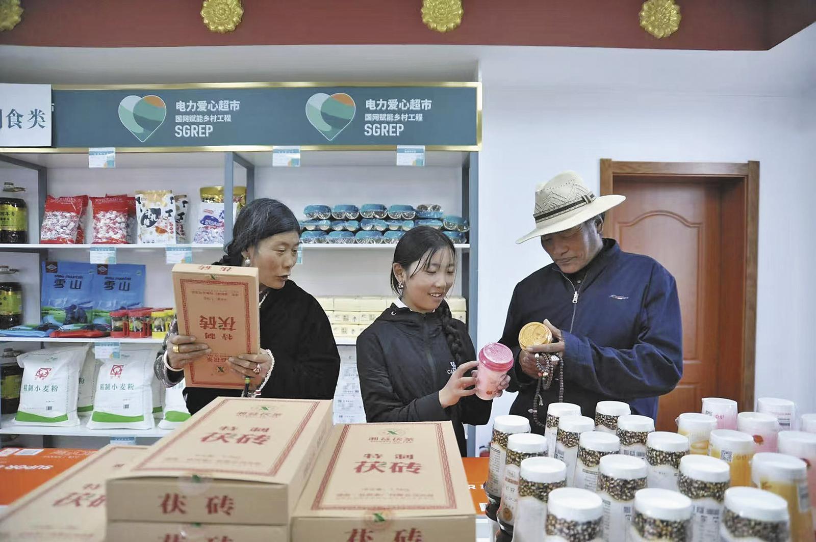 村民在“電力愛心超市”,挑選心儀的商品(國(guó)網(wǎng)果洛供電公司供圖)