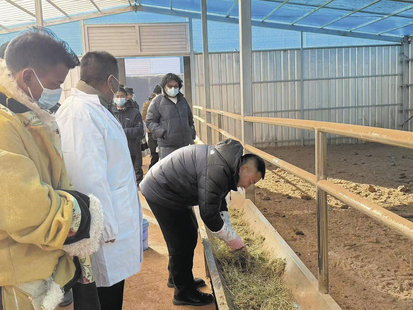 1月8日,河南縣農(nóng)業(yè)農(nóng)村局組織了“河南縣牛羊科學(xué)養(yǎng)殖現(xiàn)場(chǎng)觀摩交流活動(dòng)”,青海省牛產(chǎn)業(yè)科技創(chuàng)新平臺(tái)專家王書祥副研究員看到合作社開展全混合日糧飼喂牦牛的效果非常好,興奮地講:“在青海牧區(qū)第一次看到能做出這么好的全混合日糧飼喂牦牛,讓我看到了青海牦牛產(chǎn)業(yè)向科學(xué)養(yǎng)殖邁出了一大步?!?/p>
