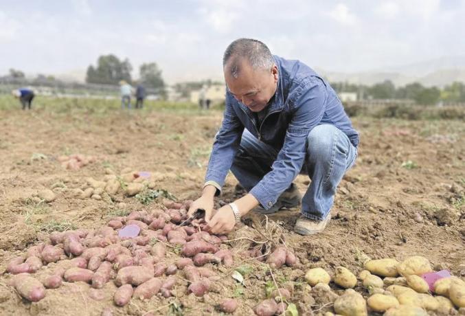 王艦觀察新長(zhǎng)出來(lái)的馬鈴薯