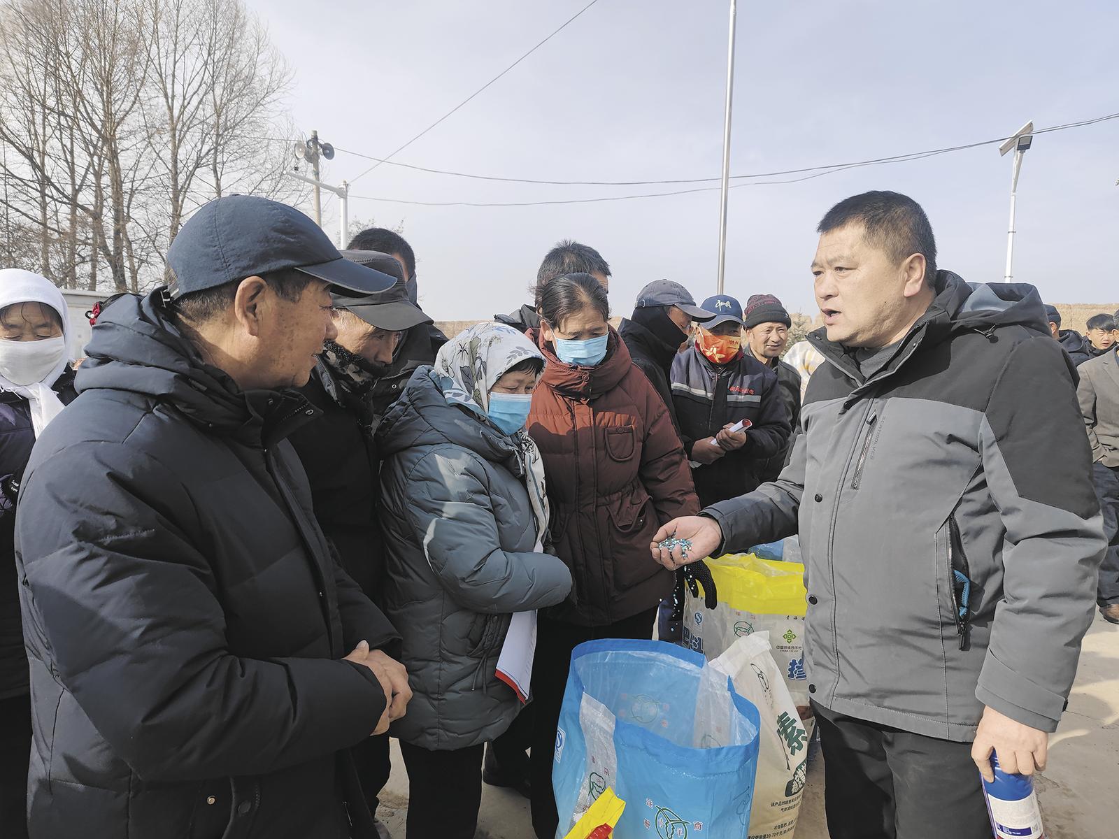 宣講現(xiàn)場,工作人員向群眾介紹新型肥料和農(nóng)藥。記者 丁玉梅 攝