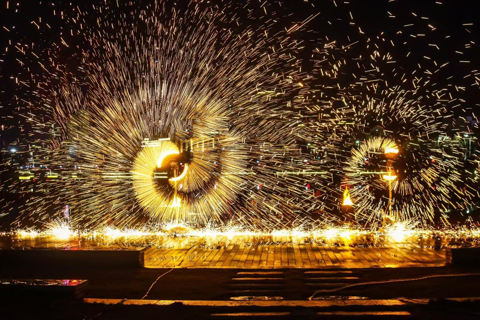 今年春節(jié)期間,以“蛇舞新春·函谷祈?!睘橹黝},河南靈寶的函谷關(guān)大廟會(huì)每天推出120場演出?!洞笄胤樵啤贰蹲蠚鈻|來》《秦王點(diǎn)將》《函谷迎賓》《楚漢爭關(guān)》等傳統(tǒng)節(jié)目復(fù)演升級,馬上奔跑抖火壺節(jié)目驚艷亮相,融合打鐵花、水幕燈光秀、威亞火壺表演的水上演藝項(xiàng)目《函谷盛境》推出。