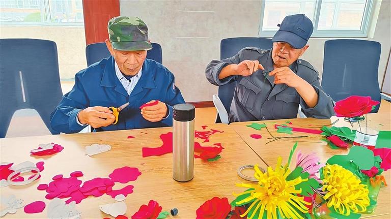 襄城縣湛北鎮(zhèn)區(qū)域綜合養(yǎng)老服務(wù)中心的老人們在練習(xí)剪紙技藝。受訪者供圖