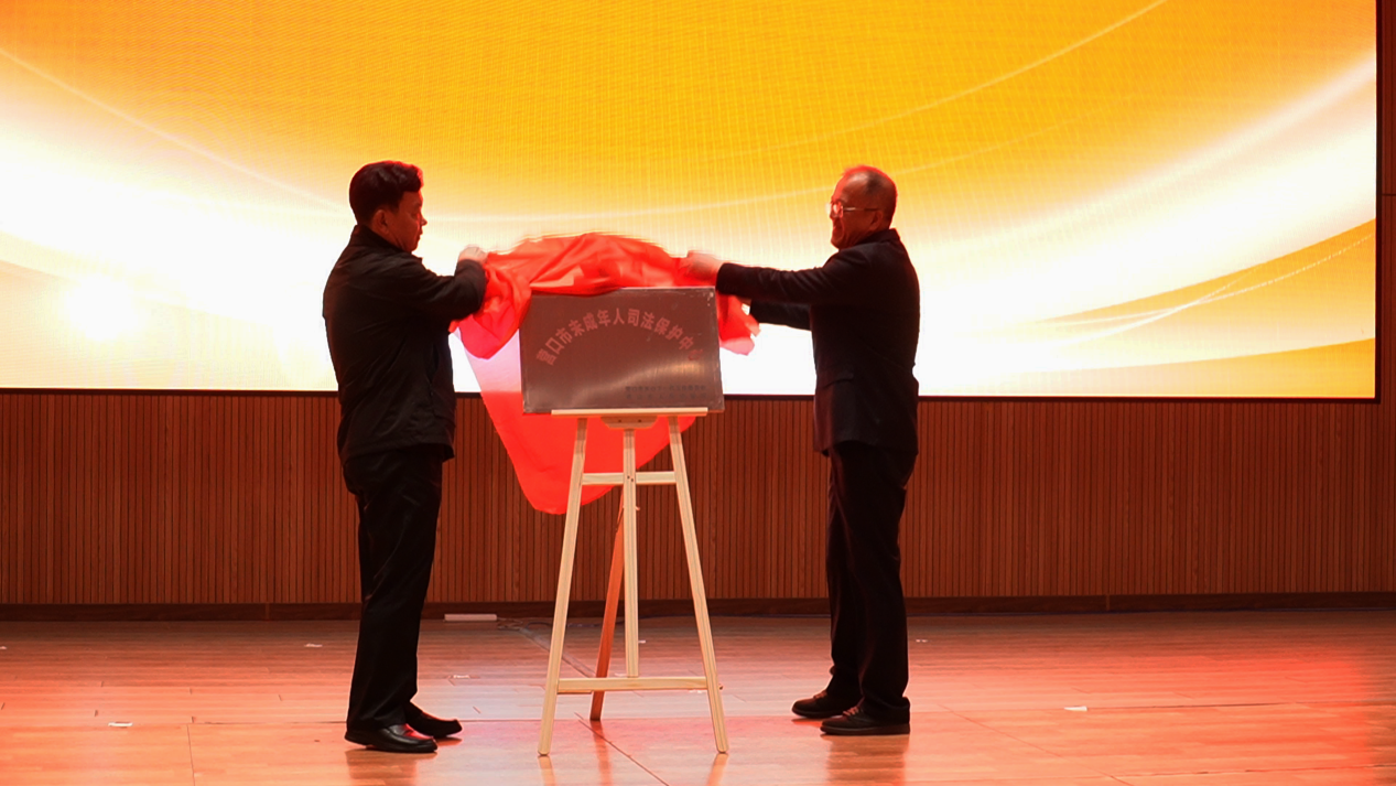 市人民檢察院黨組副書記、分管日常工作的副檢察長高兵與市關工委主任王靜春共同為營口市未成年人司法保護中心揭牌。