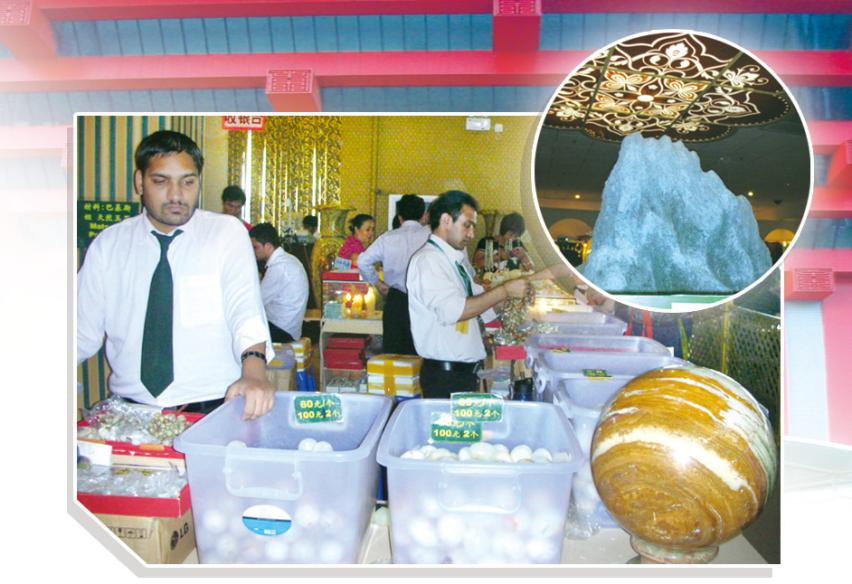 館內(nèi)一面墻,都是有關(guān)特殊年代贈予中國的那個著名的芒果展示,另一面則讓位于婦女地位的宣揚(yáng)。在館內(nèi)我未見到一位巴基斯坦女性,柜臺出售最多的是形態(tài)各異的天然玉石作品。
