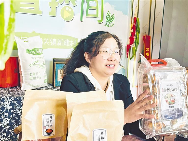 在園林村,像禹保良這樣的直播帶貨者并不少見。惠菊花和馬惠霞是“大美良田”直播間主播。這個直播間最初只賣應(yīng)季農(nóng)產(chǎn)品,后來村里成立合作社,并與企業(yè)合作推出枸杞原漿、八寶茶等產(chǎn)品,做到了經(jīng)常開播。去年,村里的西梅在直播間賣到每斤十幾元,一共賣出3000多斤,成為電商銷量最好的農(nóng)產(chǎn)品之一。