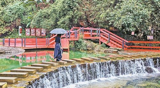 景區(qū)內(nèi)一條貫穿整個景區(qū)的紅色棧道格外引人注目。水錦順莊景區(qū)總監(jiān)助理韋炳佳介紹:“特意架高的棧道是為了避開植被使其不被破壞,采用環(huán)保木材建設(shè),雖增加成本卻最大限度保護生態(tài)?!?/p>