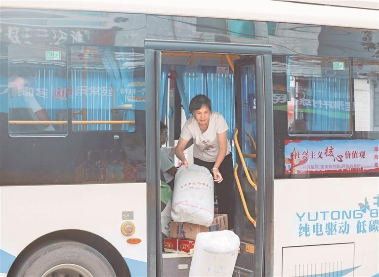 下午3點半,一輛往返于玉屏城區(qū)與新店鎮(zhèn)丙溪村的公交車輛緩緩駛入分配中心。駕駛員熟練地將大小不一的快遞包裹清點裝車。很快,這些包裹便與乘客一同,踏上了“乘公交下鄉(xiāng)”的行程。