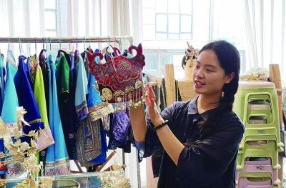 “三都班”第一屆畢業(yè)生潘曉優(yōu)向客人介紹三都的非遺產(chǎn)品馬尾繡。林志文 攝