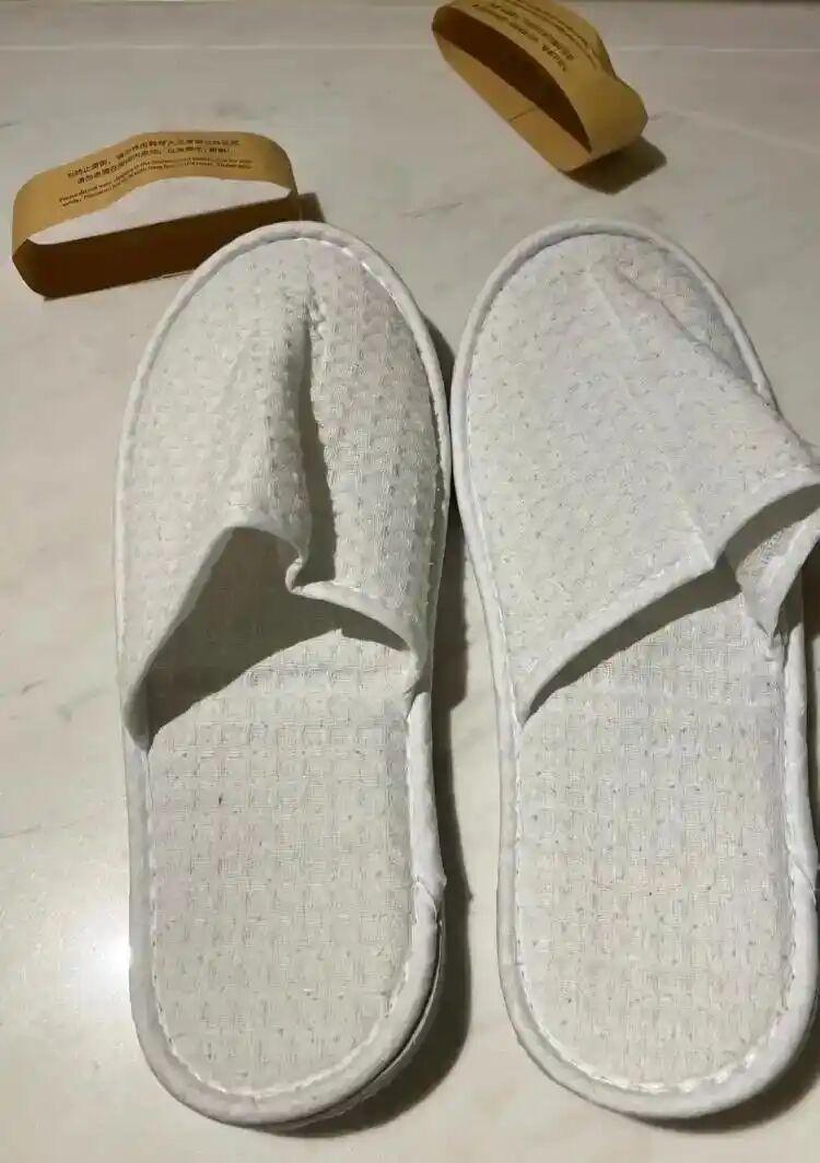 據(jù)了解,該酒店房間日常均價超過700元每天,而在捆綁拖鞋的紙帶上只提到“為防滑倒,請勿將拖鞋穿入浴室或者公共區(qū)域”。對此,涉事酒店負(fù)責(zé)人承認(rèn),酒店的確未提前告知拖鞋為循環(huán)使用。