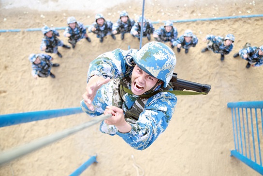 為了提高連隊訓(xùn)練水平,周曉超不斷向險難課目發(fā)起沖擊。直升機滑降是偵察兵必需掌握的課目之一,短短四五秒時間,要從3層樓高懸停的直升機上一躍而下,落地后還要轉(zhuǎn)身出槍繼續(xù)戰(zhàn)斗。對于熟練掌握這個課目的周曉超來說,難的不是順利完成索降,而是如何在原有基礎(chǔ)上不斷提高成績。