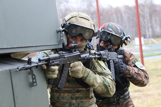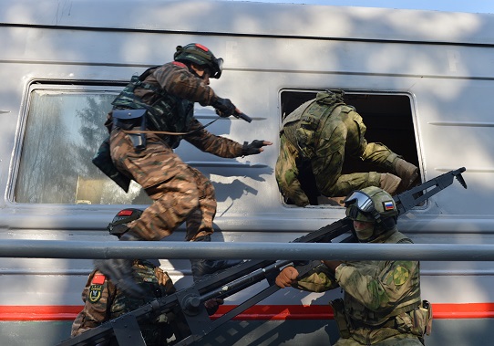 本次聯(lián)演為期11天,以聯(lián)合打擊恐怖主義為主題,按照“實(shí)戰(zhàn)化、對抗化、基地化”的思路,區(qū)分聯(lián)合基礎(chǔ)訓(xùn)練、戰(zhàn)術(shù)協(xié)同訓(xùn)練、綜合對抗演練3個(gè)階段,在俄羅斯新西伯利亞市近郊的“戈?duì)杻?nèi)”訓(xùn)練中心及周邊地域展開4大類近30個(gè)課目的訓(xùn)練和交流。中國武警部隊(duì)和俄國民衛(wèi)隊(duì)分別派出獵鷹突擊隊(duì)和“葉爾馬克”獨(dú)立特種作戰(zhàn)部隊(duì)參加。