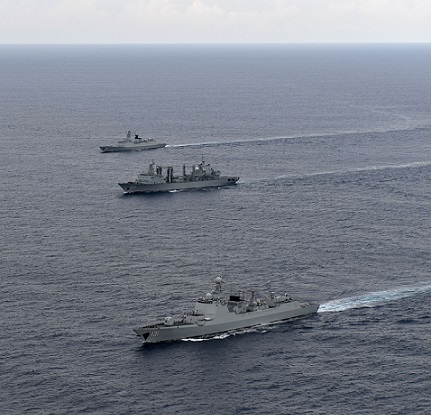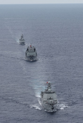 圖為5月14日,海軍第35批護航編隊進行編隊協(xié)同訓(xùn)練。 江山 攝