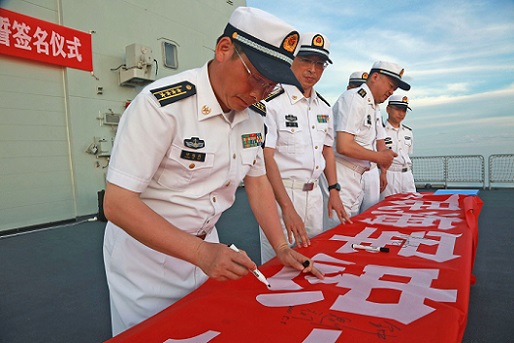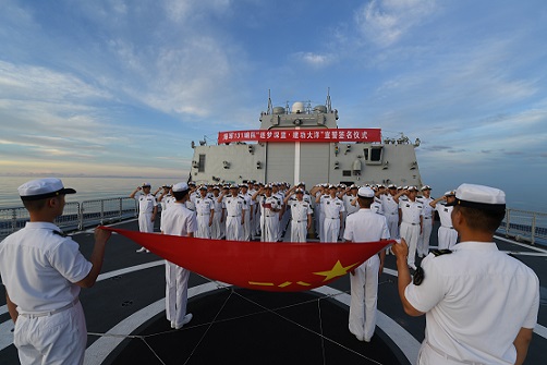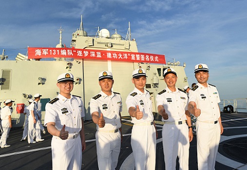 萬里航程剛剛起步,履行使命任重道遠(yuǎn)。編隊指揮員紀(jì)樂江在宣誓儀式上號召大家,要以通過赤道這一特殊地理原點為新的起點,把逐夢強(qiáng)國強(qiáng)軍、闊步世界一流的雄心壯志,化作鐵心向黨、絕對忠誠的堅定信念,化作直面強(qiáng)敵、敢于亮劍的無畏勇氣,化作嚴(yán)謹(jǐn)求實、追求卓越的過硬作風(fēng),化作攻堅克難、連續(xù)作戰(zhàn)的頑強(qiáng)斗志,以一流的標(biāo)準(zhǔn)、一流的成績、一流的風(fēng)采,切實做到不負(fù)時代重托、不辱光榮使命。