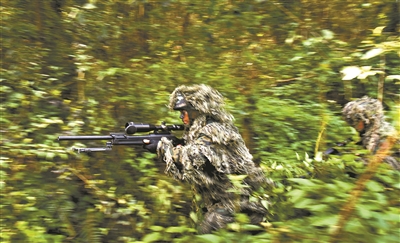 圖為叢林深處,狙擊手快速展開追剿行動。