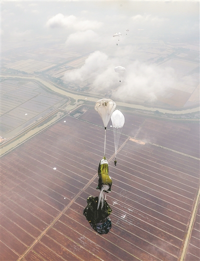 5月中旬,第72集團(tuán)軍某旅開(kāi)展多傘型攜裝傘降訓(xùn)練。