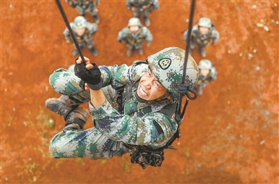 筆者在訓練場看到,列兵王任可剛剛完成武裝越野,接著便進行通過障礙、牽引橫越等課目訓練,不斷挑戰(zhàn)體能極限。多個課目科學組合,一個戰(zhàn)斗過程連貫實施,不僅增強了技戰(zhàn)術水平,也錘煉了戰(zhàn)斗精神。