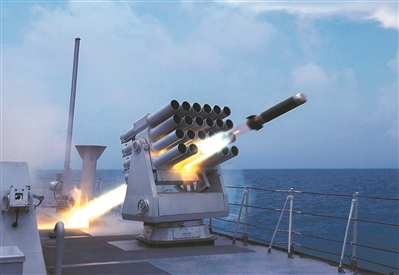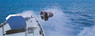 “開火!”占領(lǐng)有利攻擊陣位后,玉林艦指揮員果斷下達(dá)作戰(zhàn)命令。“轟!轟!轟!”一枚枚炮彈裹挾著濃煙沖出炮膛,直撲目標(biāo)。