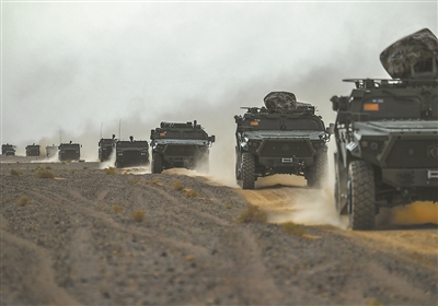 熱浪滾滾,飛沙漫天。官兵克服惡劣天候帶來的不利影響,向指定地域急速開進。突然,偵察分隊報告前方發(fā)現(xiàn)“敵”工事。面對突如其來的“敵情”,指揮員當機立斷,決定采取行動摧毀目標。一聲令下,官兵迅速占領有利打擊陣位,一門門戰(zhàn)炮昂首列陣……