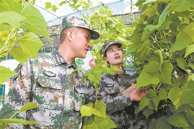 左亞賓帶著妻子參觀連隊溫室大棚。