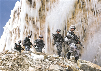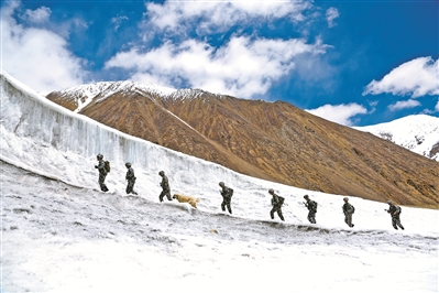 左亞賓(右一)帶領(lǐng)官兵向界碑挺進。