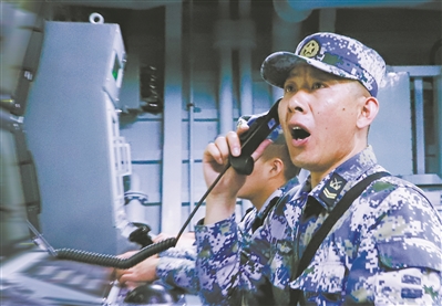 圖②:信陽艦主炮指揮員下達戰(zhàn)斗指令。