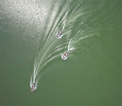 圖③:特戰(zhàn)隊員駕駛沖鋒舟追擊“暴恐分子”。