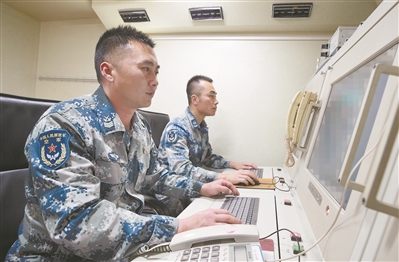 雷達(dá)操縱員沉著應(yīng)對“敵情”。