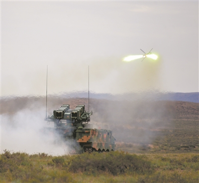 另一作戰(zhàn)地域,面對藍(lán)方坦克火力點(diǎn)猛烈打擊,紅方進(jìn)攻受阻。“01,我是07,請求支援!”話音剛落,導(dǎo)彈呼嘯而出,直撲“敵”坦克火力點(diǎn)。據(jù)悉,這是該旅剛列裝不久的某新型反坦克導(dǎo)彈武器系統(tǒng)首次參演,即取得4發(fā)4中的佳績。